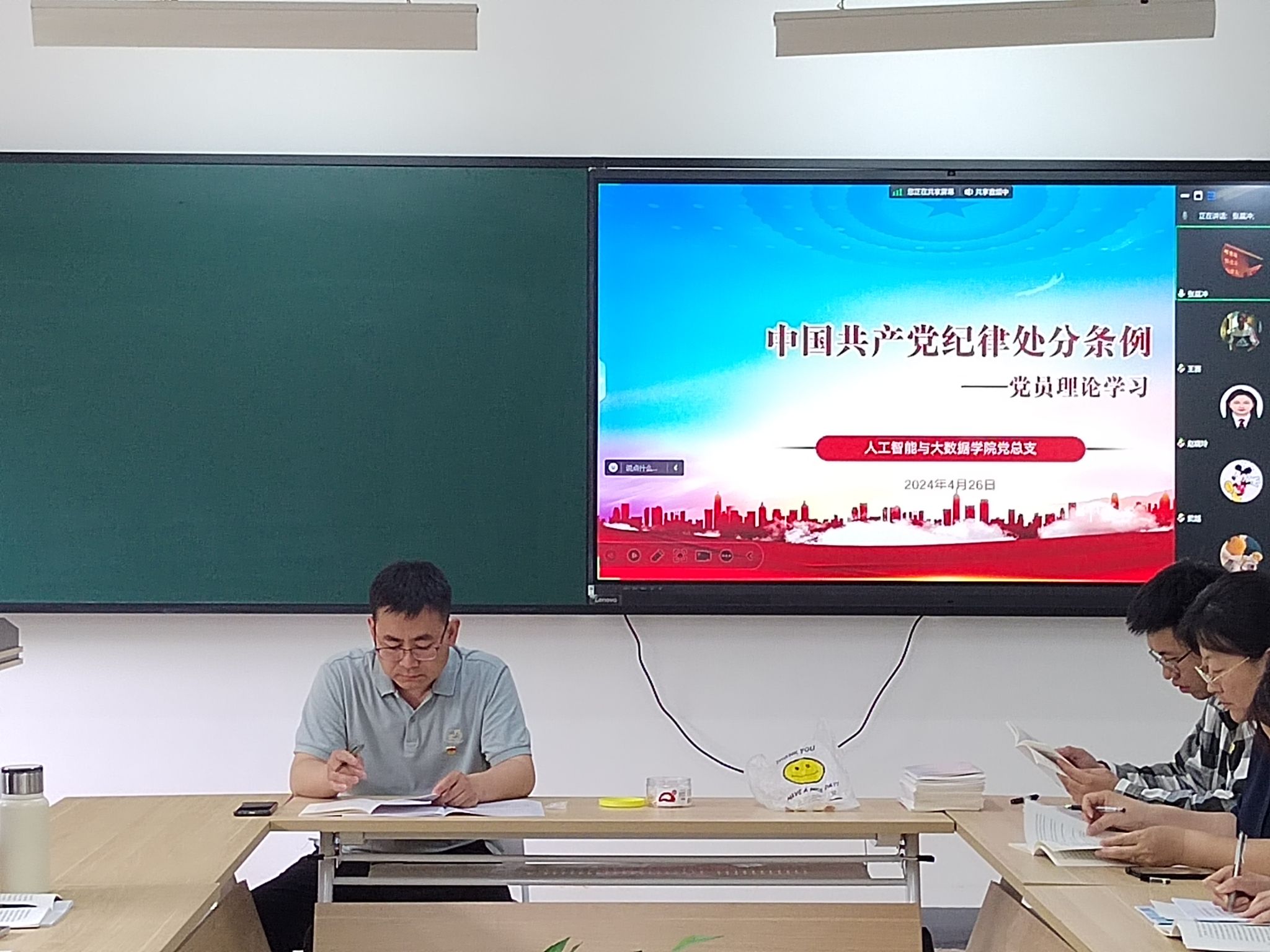 首先,尹钧院长开场致辞,强调学习《条例》的重要性和紧迫性,并对全体党员提出学习要求。指出,纪律是党的生命线,是保证党的团结统一、完成党的任务的重要保障。每一位党员都应该深刻认识到学习《条例》的重要意义,将其作为加强党性修养、提高自身素质的重要途径。