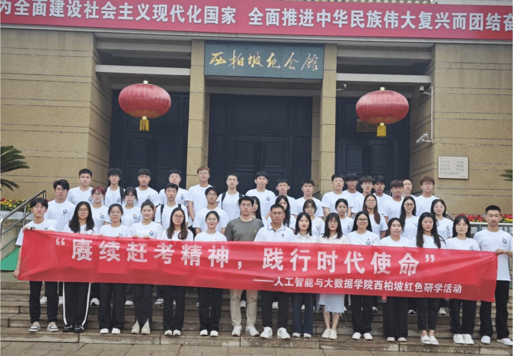 为深入学习贯彻习近平新时代中国特色社会主义思想,引导广大学生切实筑牢信仰之基、补足精神之钙、把稳思想之舵。2024年5月24日,beat365亚洲版官网组织师生赴西柏坡开展了“赓续赶考精神,践行时代使命”红色研学活动,参与本次活动的有beat365亚洲版官网党总支书记、学管副院长尹钧,beat365亚洲版官网思政教研室主任李亚鑫,beat365亚洲版官网学管办主任杨家腾,马克思主义学院专任教师宋筱静、冯润青以及beat365亚洲版官网40余名学生代表。