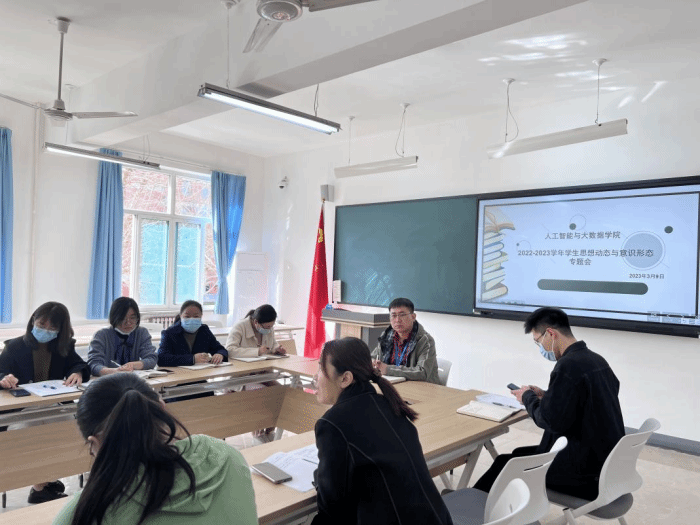 为深入学习贯彻习近平新时代中国特色社会主义思想,落实全国教育大会、高校思想政治工作会议精神,全面客观掌握新学期beat365学生思想动态,增强新学期学生思想政治教育和管理的针对性、实效性。3月9日下午,beat365亚洲版官网在启行楼216会议室举行2022-2023学年学生思想动态与意识形态专题会。beat365亚洲版官网党总支书记兼学管副院长尹钧、学管办主任杨家腾、团总支书记王珊、招生就业办公室主任孟鑫、各教研室主任以及全体辅导员参加了此次会议,会议由学院党总支书记兼学管副院长尹钧主持。