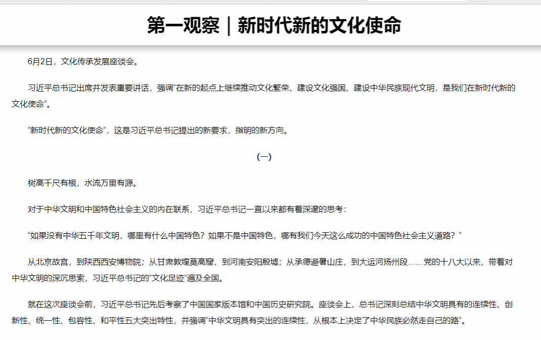 习近平总书记出席文化传承发展座谈会并发表重要讲话,强调“在新的起点上继续推动文化繁荣、建设文化强国、建设中华民族现代文明,是我们在新时代新的文化使命”。