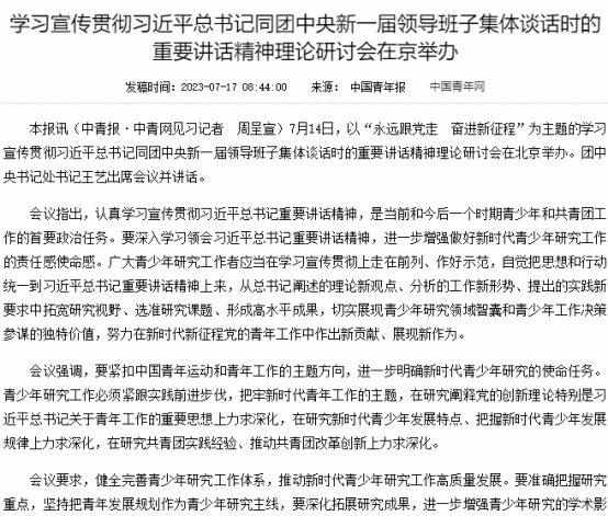 学习宣传贯彻习近平总书记同团中央新一届领导班子集体谈话时的重要讲话精神理论研讨会在京举办