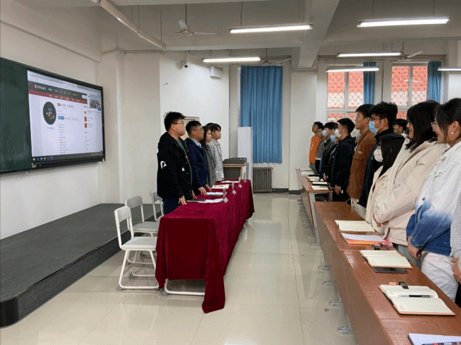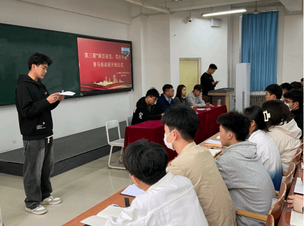 本次青马培训开班仪式由青马培训负责人刘宇轩主持,开班仪式在嘹亮的团歌声中拉开帷幕。首先由尹钧院长宣布第三期“踔厉奋发,笃行不怠”青马培训班正式开班接着由青马培训班学员代表于仰昊代表全体学员郑重承诺:“严格遵守青马培训班的规章制度,积极配合各项工作,认真学习,在学习中实践升华自己的人格,为成为一名真正的大学生骨干、成为合格的预备党员而努力奋斗并为学校的建设和发展做出贡献!”