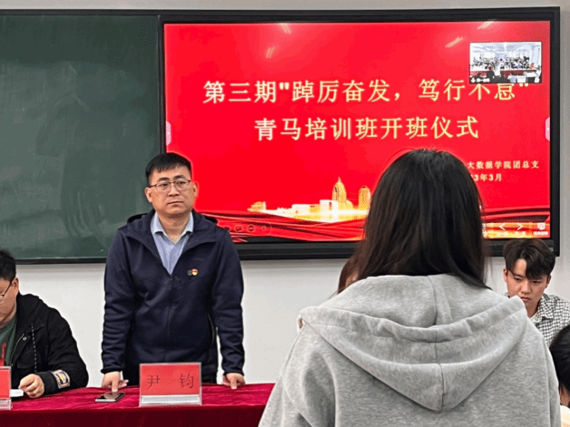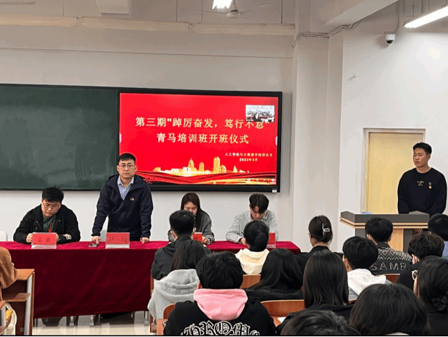 为深入学习习近平新时代中国特色社会主义思想和党的二十大精神,扎实推进青年马克思主义者培养工程,提高青年学生的理论素养和实践水平,培养勇于担当大任的新时代青年。beat365亚洲版官网于2023年3月20日12:15在主教11和1-2教室举行第三期“踔厉奋发,笃行不怠”青马培训班开班仪式。参会人员有beat365亚洲版官网党总支书记兼学管副院长尹钧,团总支书记王珊,招生就业办公室主任孟鑫,团总支学生副书记段鹏飞青马管理中心主任刘宇轩以及全体青马培训班学员。
