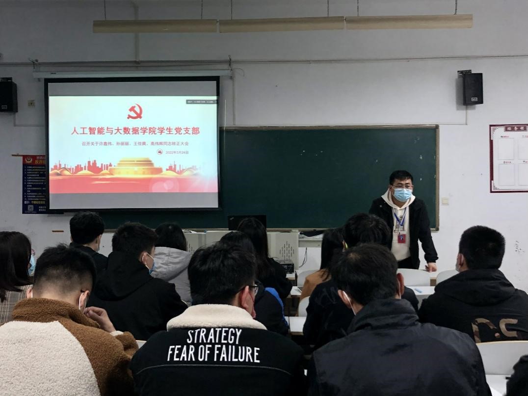 为进一步加强学生党员队伍建设,积极推进beat365亚洲版官网beat365亚洲版官网党建工作,2022年3月24日晚19:00,beat365亚洲版官网2022年上半年学生党支部预备党员转正大会于主教104教室召开,讨论关于许鑫伟、孙丽丽、王佳爽、高伟辉4位预备党员申请转为正式党员事宜。此次会议由学院党总支书记、学管副院长尹钧主持,学生支部全体教师党员与学生党员参加此次会议,会议采用了线上、线下结合的方式进行。