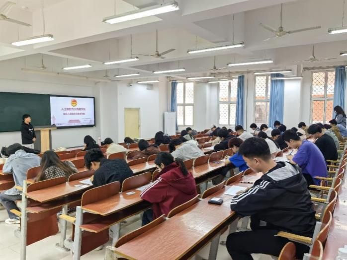 此次考试旨在提升学生们的思想政治素养和综合水平,巩固学生们对团课学习成果。考试前夕,入团积极分子们认真准备,以饱满的精神风貌以及严谨的态度来应对此次考试。考试时,监考人员从严把控考场秩序,严肃考风考纪,确保考试的公平公正;入团积极分子们从容不迫、专注答题,整个考场井然有序。