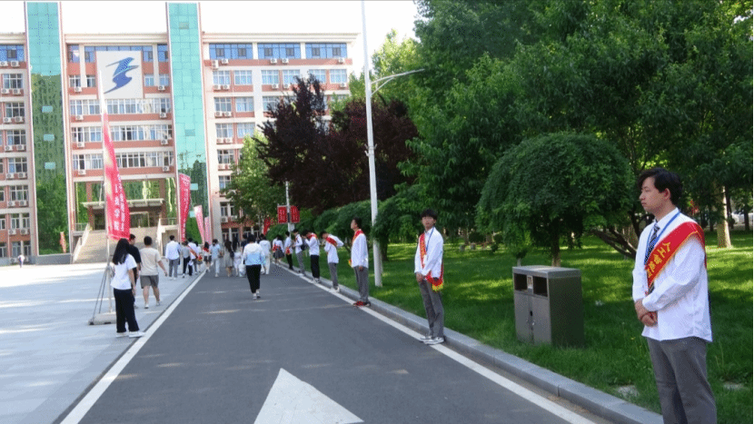 工作人员引导参赛选手入校