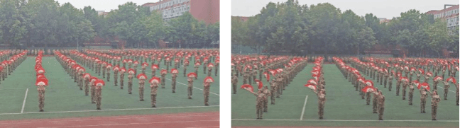 学子们无惧烈日,不畏风雨步伐铿锵有力,内务规范整齐。声声口号是爱国强音,百炼成钢淬是强国精神。志厉青云,声如雷霆,军姿威武,气势雄壮,神情严肃,浩气凛然。口号响彻云霄,齐步虎虎生风,正步掷地有声。