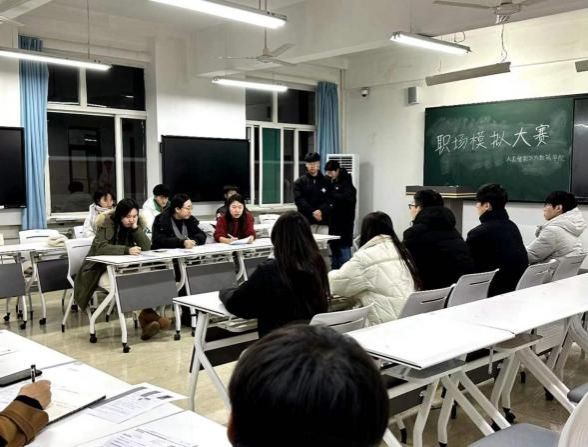 比赛分为自我展示、职场模拟化提问和职场演绎三个环节。在展示环节,选手们以PPT形式就自己对求职岗位的理解探索、自身的学习和实习经历、求职优势及职业发展规划等方面进行了展示;评委围绕选手的职业定位、岗位匹配、意愿动机等进行模拟化提问。在职场演绎环节,选手们根据抽取的职场视频及问题,进行情景模拟测试。比赛中,选手们逻辑严密,表达清晰,灵活应对,见招拆招,评委们也针对每位参赛者的面试情况给予针对性的指导建议。