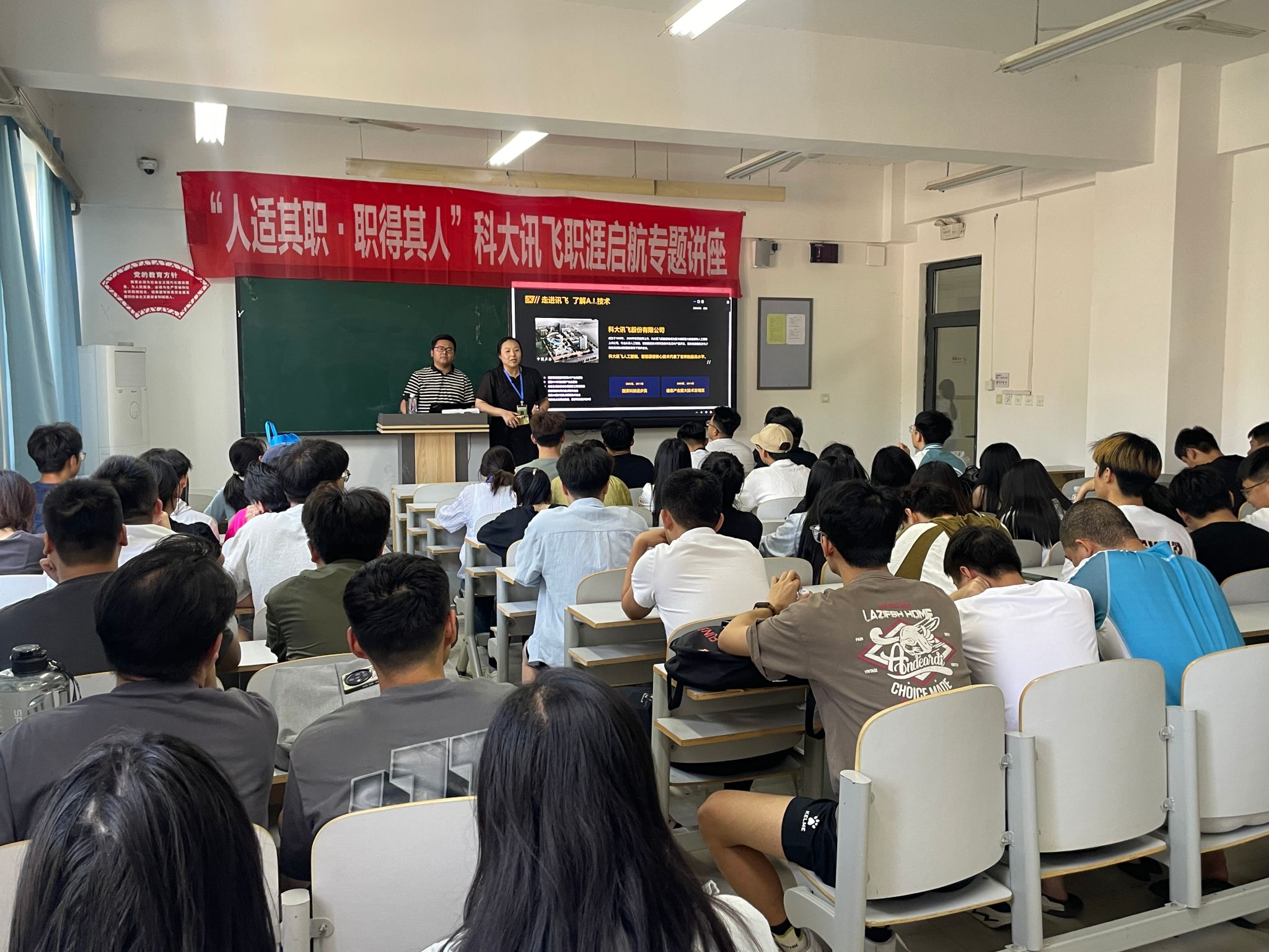 为进一步深化产教融合,完善人才培养协同机制,推动学生高质量就业,beat365于2024年5月31日在主教106开展了“人适其职,职得其人”职涯启航专题讲座,特邀两位科大讯飞讲师,面向学院21级人工智能专业、智能科学与技术专业全体学生进行职涯启航指导活动。