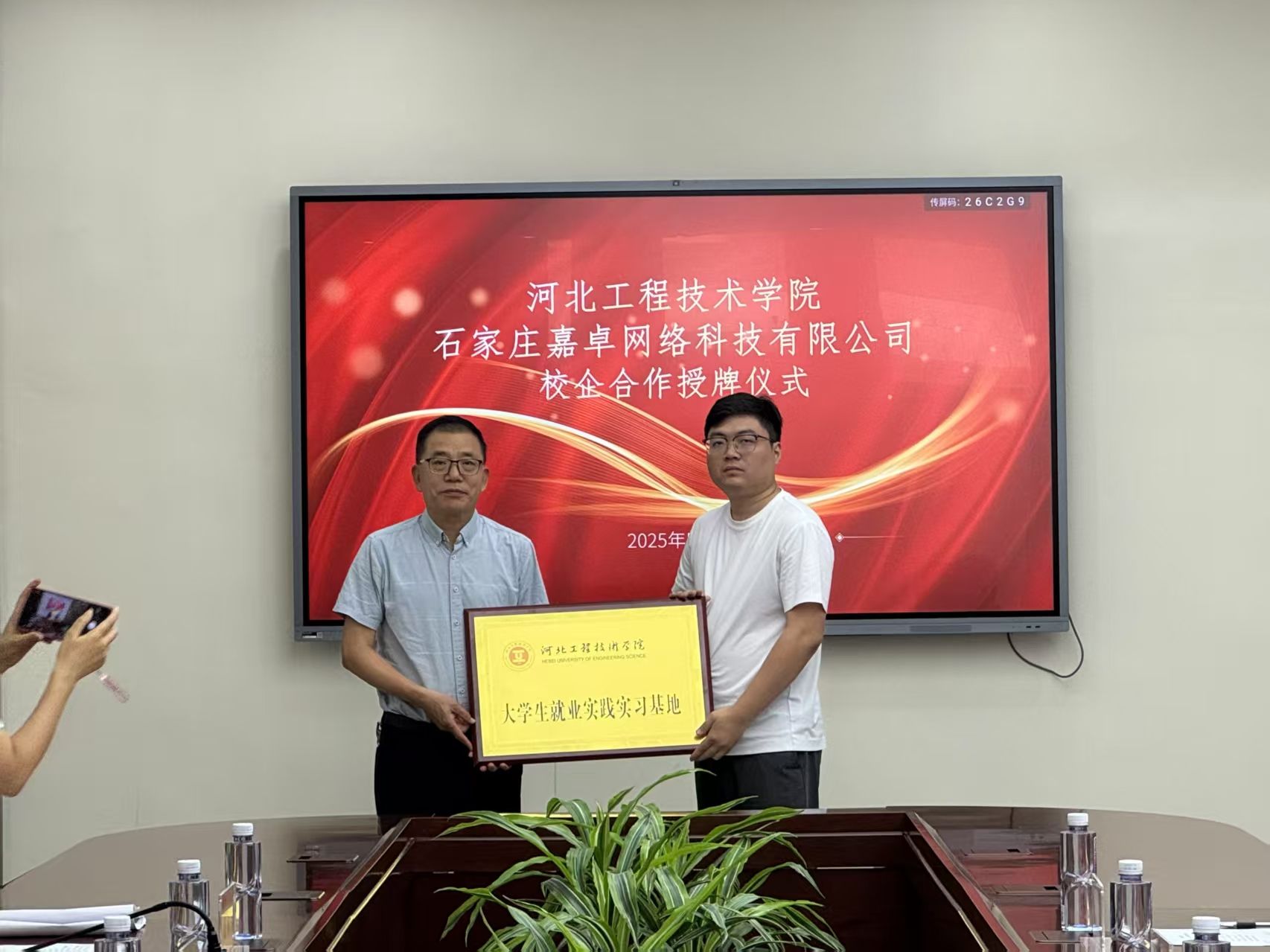 为深化产教融合、推动协同育人,搭建人工智能领域人才培养与产业需求对接的优质平台,beat365亚洲版官网于2025年 5月21日10时在会议中心第二会议室隆重举行大学生就业实践实习基地授牌仪式。出席领导;beat365亚洲版官网副校长姜新佩,beat365亚洲版官网院长王静红,beat365亚洲版官网学生工作处副处长张静,beat365亚洲版官网党总支书记、学管副院长尹钧。石家庄嘉卓网络科技有限公司、普睿机器人(河北)有限公司、宙安科技(北京)有限公司等企业代表应邀参加。此次活动由尹钧院长主持。