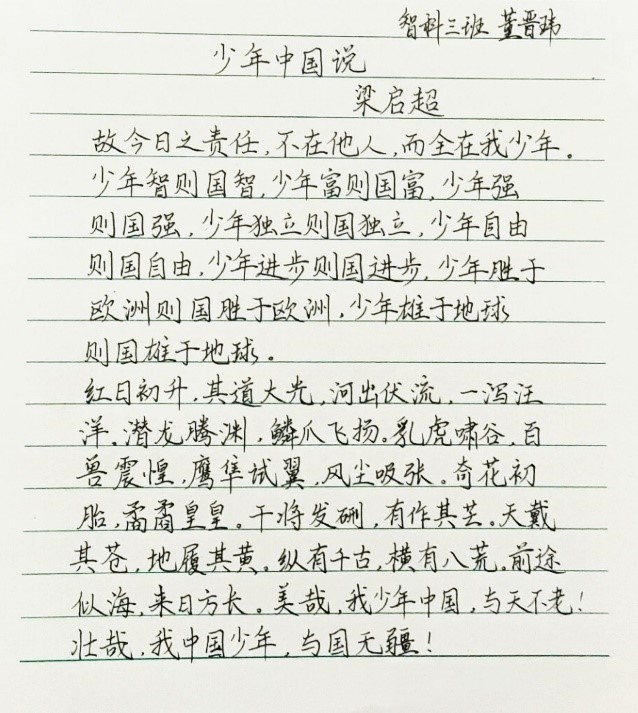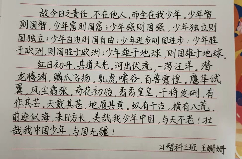 完善的道德教育维系着中国未来的命运,而书法教学的德育功能是无法替代的。从一点一画开始,书法的学习过程本身就是一种“修炼”的过程,一种耐力,一种向上精神的培养过程。此次活动激发数智学生爱国热情,增进学识修养,提高汉字使用书写和培养艺术欣赏能力,陶情养性,培养文化人格,提高学生素养,有益身心健康。