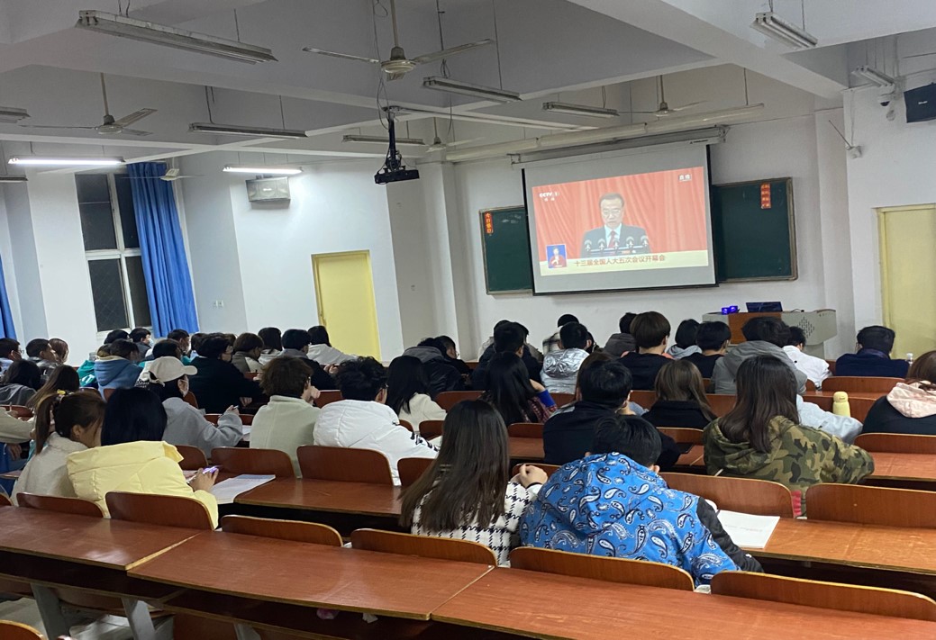 各班干部、社团干部在阶梯教室观看全国两会开幕式,在工作中起到模范带头作用,学习两会工作报告,关注会议各项进展,深入学习新思想,把握新形势,不断提升综合素质,努力成为具有社会担当、责任心、正确价值观的新时代大学生。