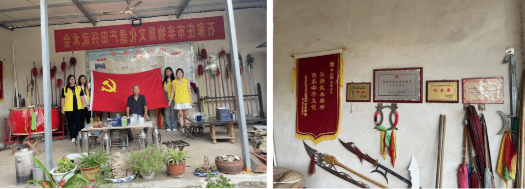 第二站来到了老党员石增海家,石爷爷已经73岁了,党龄也35年有余。刚进石爷爷家的时候,实践小队的成员都非常的震惊,石爷爷的家中摆满了各种表演的武术器材,墙上也挂满了各种证书。原来石爷爷一生习武,他是田兴武术会的传承人,石爷爷给我们讲了田兴武术会的发展历史,当年田兴武术会的石双喜跟随义和团首领曹福田,协手抗击过八国联军。2020年12月田兴武术会被石家庄市政府列入石家庄市非物质文化遗产名录。