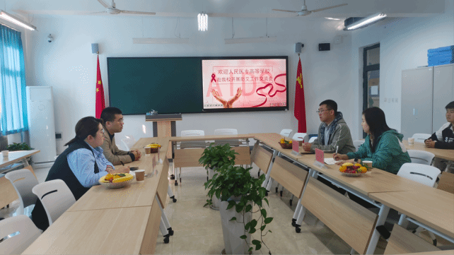 为加强防治艾滋病宣传教育工作,创新beat365艾滋病防治宣传教育工作,beat365亚洲版官网与人民医专高等学校于10月24日在次教216开展防艾工作交流会。出席本次交流会的有beat365亚洲版官网党总支书记兼学管副院长尹钧、团总支书记王珊和部分学生代表,人民医专高等学校临床医学系党总支书记刘渤家、团总支书记杜文灿和部分学生代表。
