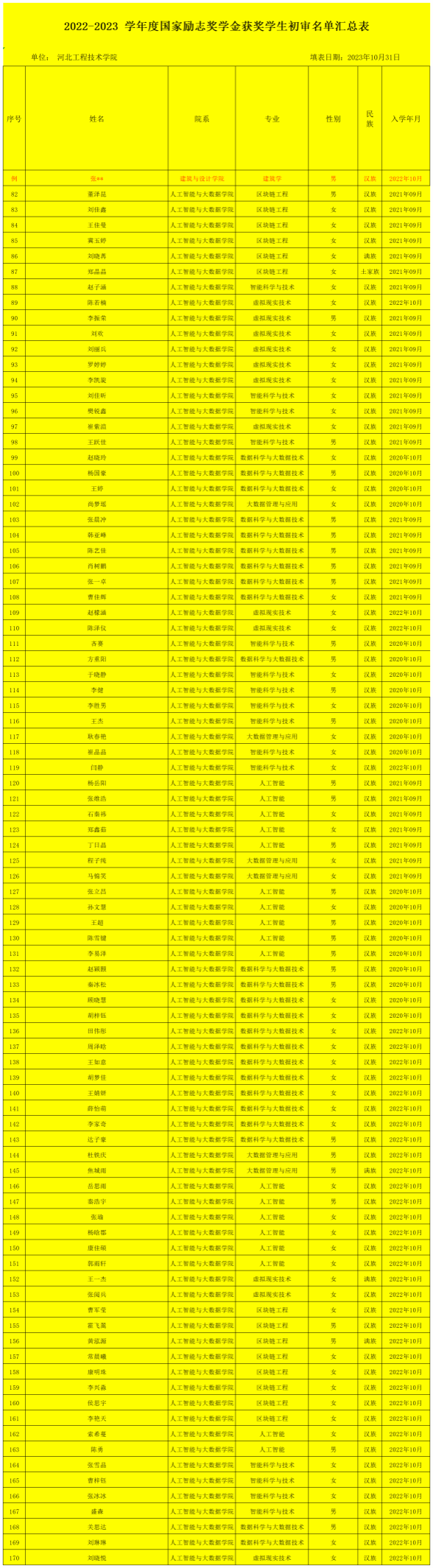 根据《河北省教育厅、河北省财政厅关于印发〈关于印发河北省普通本科高校、高等职业院校国家励志奖学金、国家助学金实施细则以及学生勤工助学管理办法〉的通知》,经评审,beat365共89名学生获得2022-2023学年国家励志奖学金。现将获奖名单予以公布。