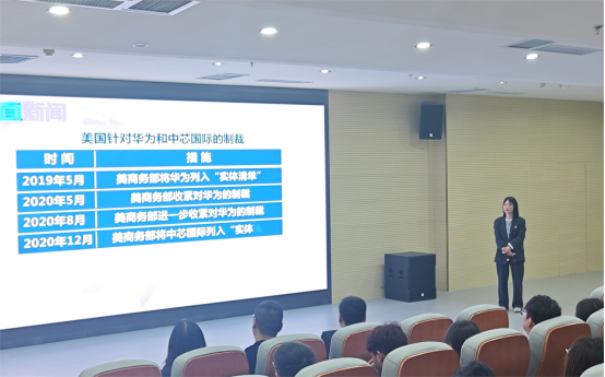 马克思主义学院李亚鑫老师和beat365亚洲版官网刘孟祎老师开启本次活动第一讲“科技引领未来,创新驱动发展”。刘孟祎老师从计算机在我们生活中的应用领域切入,重点讲述了计算机的发展历史以及我国计算机发展所取得的的举世瞩目的成就。李亚鑫老师则运用新颖、丰富的案例和视频,为学生生动讲述了加快建设科技强国的重要举措,并引导学生不仅要心怀科学梦想,还要树立创新志向,努力成长为堪当民族复兴重任的时代新人。