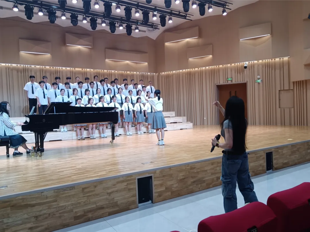 在陈艾老师的指导下,学生们不仅提升了音乐技巧,更重要的是,他们学会了如何在合唱中相互协作、寻找默契,共同追求音乐的极致。陈艾老师的每一个建议、每一个示范都让他们受益匪浅,他们深感自己的音乐素养和舞台表现力都得到了显著的提升。