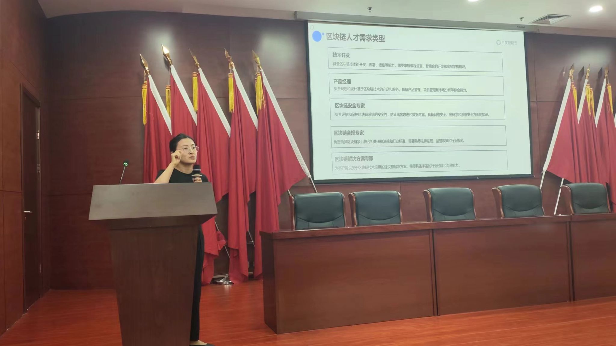 随后冯世增和学生分享了区块链人才需求背景、特点、类型和区块链人才如何提升自我竞争力:随着区块链技术的不断成熟和应用领域的逐渐扩大,市场对区块链人才需求也日益增长。区块链技术涉及多个领域,需要具备较高的专业技能。这也造成了区块链技术人才的稀缺,尤其是技术型人才。此后区块链技术与其他技术融合更是行业的发展趋势。冯世增呼吁学生关注人工智能、大数据、 隐私计算等具备跨界融合能力的新兴技术的发展。