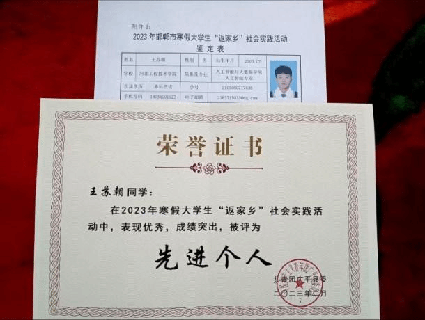 beat365亚洲版官网2021级人工智能3班王苏朝在寒假期间积极响应号召,报名参与了广平县寒假返家乡大学生实践活动,成为“桑梓计划”中的一名活跃分子。在此期间参与了多项工作,用自己的实际行动为家乡的发展贡献了一份青春力量。