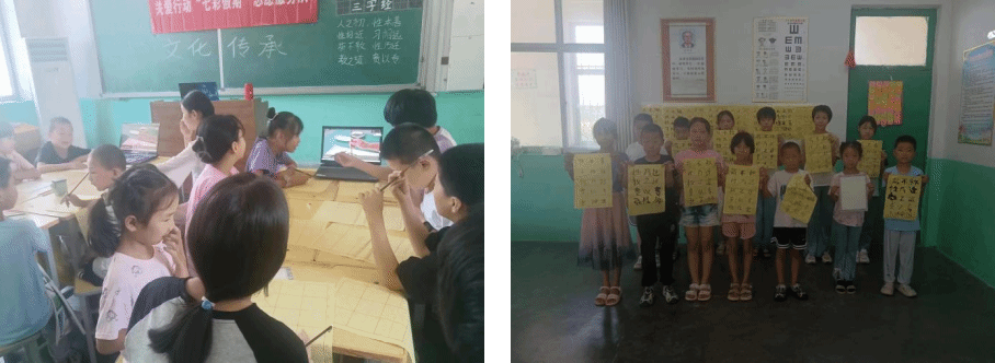 除了剪纸,“小智公益团队”还向学生们介绍了中国书画和汉字。书画是中国传统文化的重要组成部分,而汉字更是中华民族的瑰宝。通过学习书画和汉字,学生们可以更好地了解中国的文化和历史。“小智公益团队”带领学生们学习了一些基本的写字技巧,并且让他们体验了书法的乐趣。学生们通过练习书写汉字,不仅提高了他们的字写技巧,还培养了他们的审美能力和文化素养。