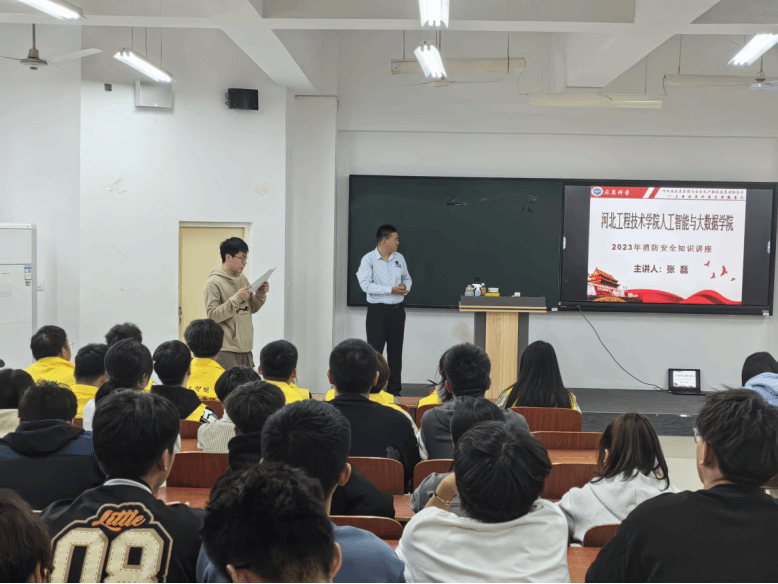 为使学生们认识到火灾的危险性以及其可能引发的灾难性后果,提高学生们的火灾安全意识,beat365亚洲版官网消防协会于2023年10月27日下午2点在主教2-2举办了消防安全知识讲座。同时,也进行了一次消防演习,地点位于次教。学院邀请河北省应急管理与安全生产协会应急消防分会张磊同志主讲,由beat365亚洲版官网学管办主任杨家腾主持。团总支书记王珊,全体辅导员教师代表,各专职老师以及23级各班班委共同参与活动。此次主题活动旨在为学生们提供重要的火灾预防、应急处理和救援技巧,以及在火灾应急情况下的准备能力和反应速度,确保他们在校园、家庭生活中的安全。