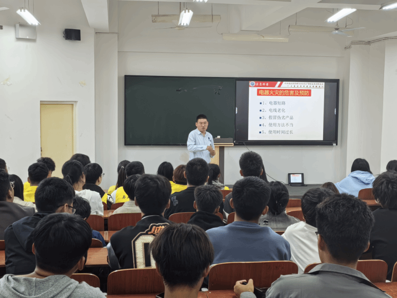 讲座中,张磊教官分享了近期关于重大火灾事故的最新信息,以此提醒学生们注意身边时刻存在的火灾隐患。紧接着,张教官又向学生们展示了火灾应急计划、火灾发生时的逃生技巧、如何使用灭火器、如何使用防烟防毒面具和如何识别火灾风险。过程中张教官表示:“火灾是一个常见但可以避免的灾难,我们希望通过这次讲座帮助学生们了解如何减少火灾风险,以及在紧急情况下如何保护自己和他人。鼓励每位学生认真学习预防火灾发生的可能性,一起学习如何保卫生命和财产。”