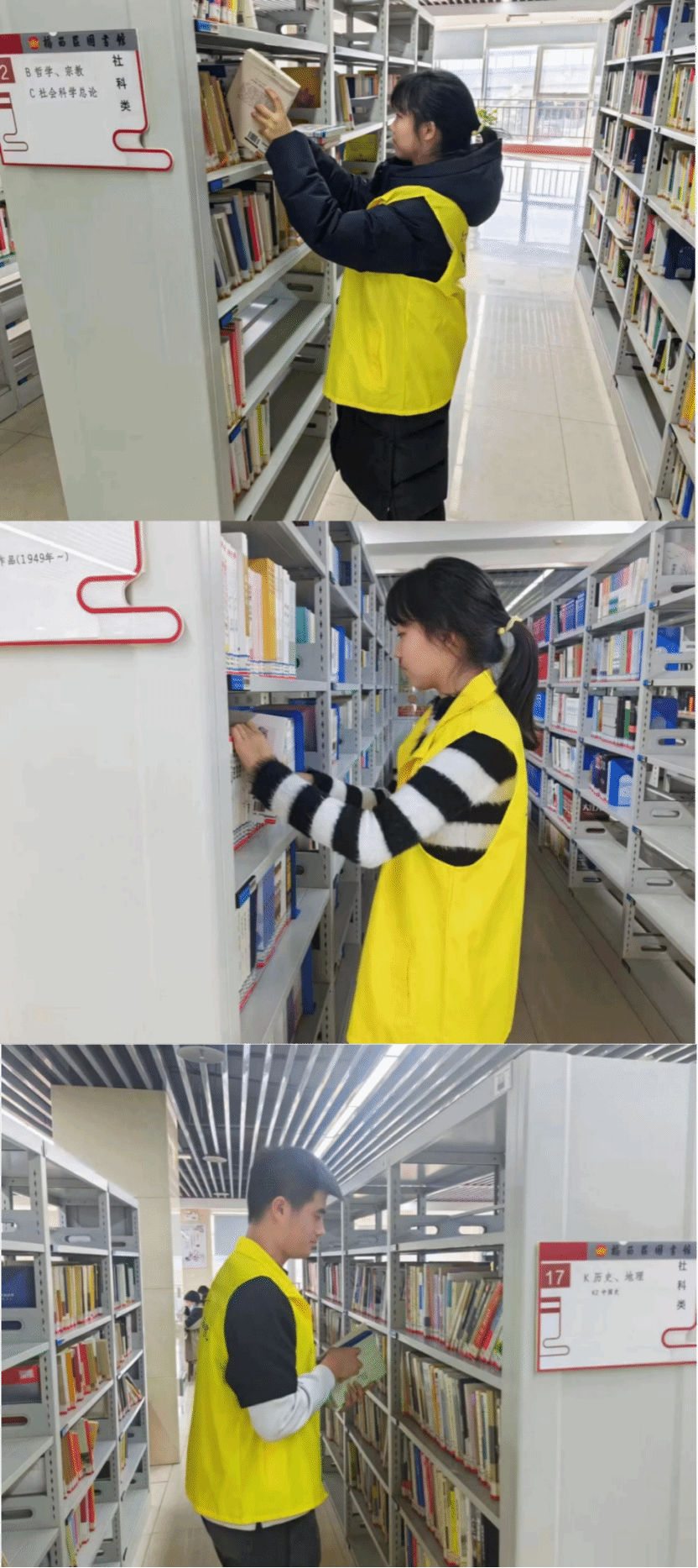 beat365亚洲版官网青年志愿者协会,于2023年11月18日至19日在桥西区图书馆开展“墨润书香,志愿同行”活动第十四期,本次活动由10名学生组成志愿小组帮助图书馆工作人员完成图书的搬运、整理、分类等工作。