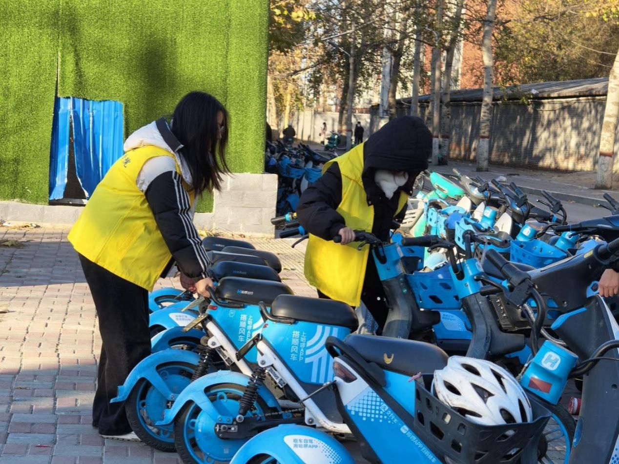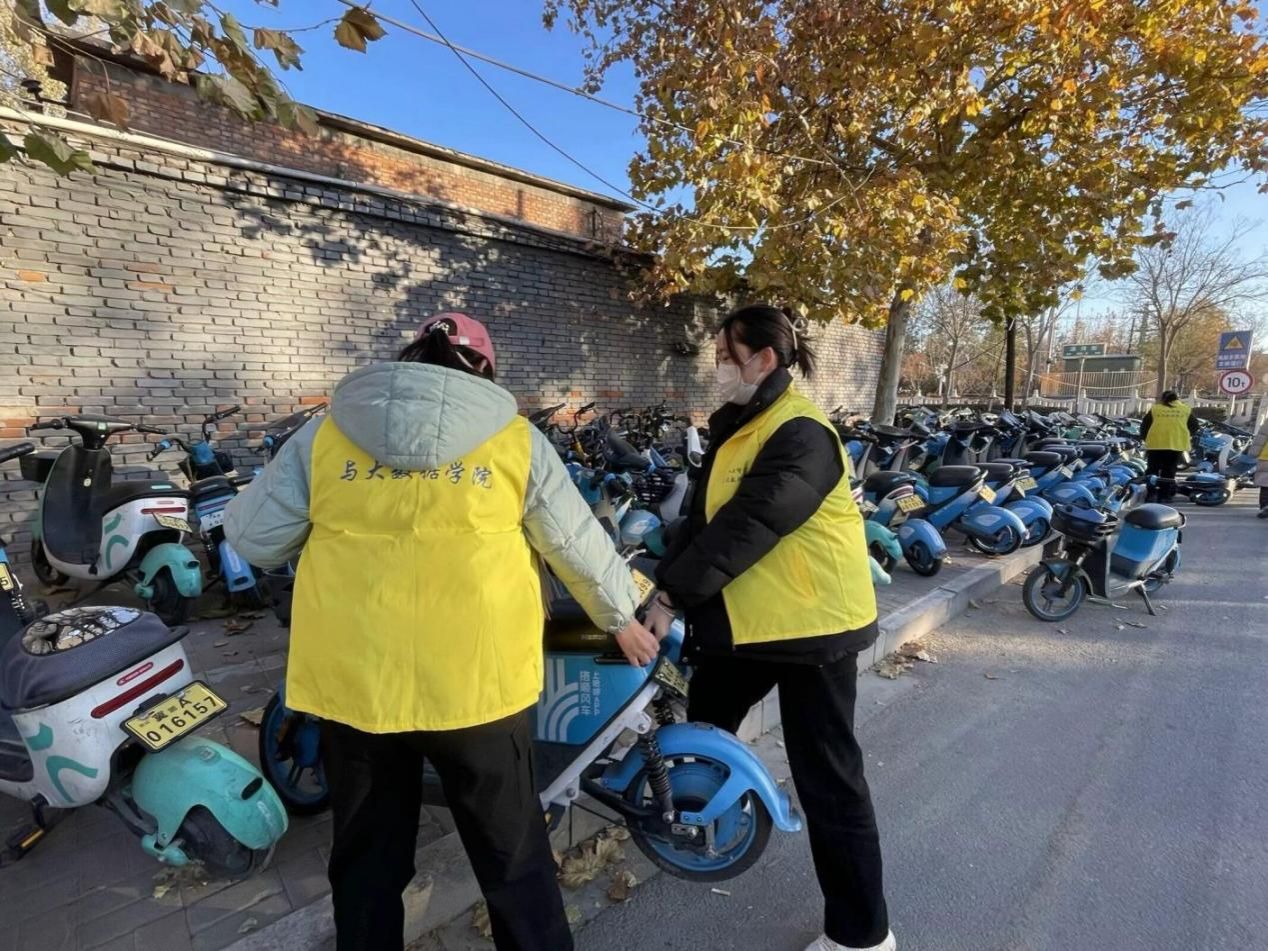 beat365亚洲版官网青年志愿者协会组织学生们于2023年11月29日上午8:00-10:00开展“合理摆放共享单车 争做城市劳动标兵”活动。