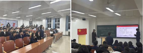 活动伊始,主持人白浩然重新讲解了本次团学竞赛活动的比赛规则,与初赛、半决赛略微不同的是决赛采用积分制,分为对答题和抢答题,最终按照积分数目来决定名次。比赛过程中,明显感受到气氛相较于初赛、半决赛更为严肃紧张。应答题环节,随着主持人的提问,选手们沉着冷静,积极应答。抢答题环节,选手们踊跃抢答,认真作答,达到了"以赛促学"的目的,不仅展现了丰富的知识储备,也赢得了观众们的喝彩。台下观众也积极参与互动,展现出学生们扎实的团学理论基础。