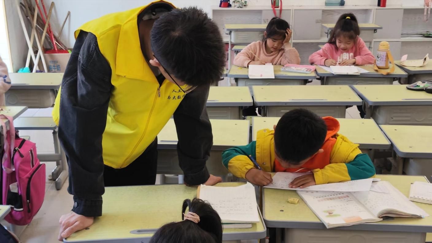 志愿者为小学生们提供作业辅导服务,当学生们在作业中遇到困难时,志愿者们耐心地倾听学生们的问题,用通俗易懂的语言为其解答疑惑,从而减轻课后作业对学生们带来的压力。对于志愿者而言这不仅是一次帮助小学生成长的助力,更是一次自我成长的过程。