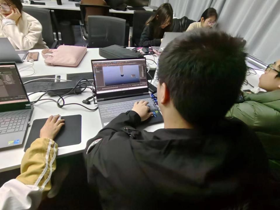 本次培训由张世民老师为大家进行了Maya教学,其中包括骨骼的拆分与绑定、动画控制等知识,学生们也跟着老师的节奏在自己电脑上进行了相关操作,随着成果一点点的显现,学生们的学习热情也逐渐高涨起来,最终展示出满意的建模成果---VR实体校园。