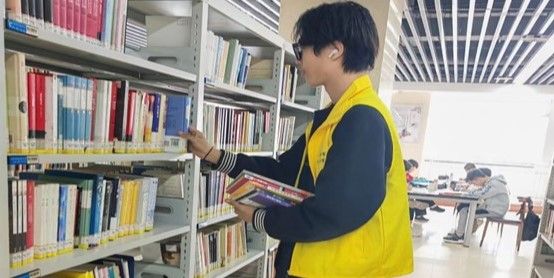 志愿者们穿梭在书架间,根据书籍编号及种类将阅读者归还的图书摆放在正确的位置,通过操作书籍查询机帮助阅读者准确找到所需图书的位置。志愿者们的工作虽然简单但却帮助阅读者减少了寻找书籍的时间。