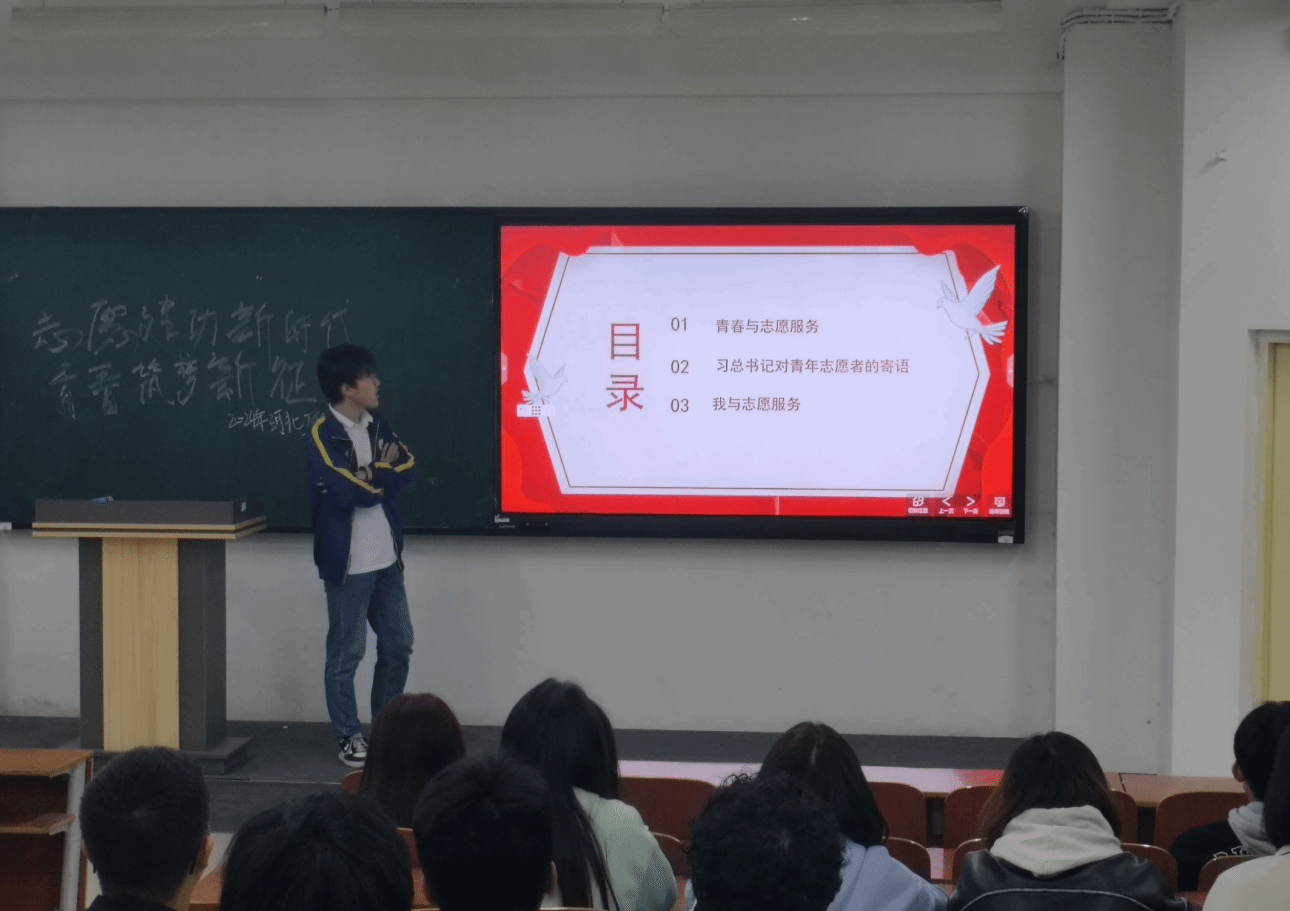 活动最后,主讲人倡导学生们都能够积极参与志愿服务活动,用自己的行动去传递爱心、传递正能量,以实际行动践行志愿服务精神,创造更加美好的校园!