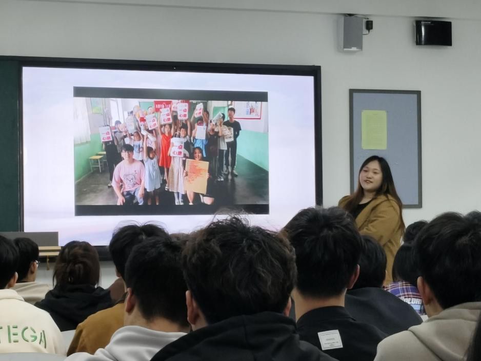 活动开始,主讲人王浩将本次演讲分为五个部分。在演讲开始前,主讲人阐述了志愿者的定义,并提到志愿者在公益活动中扮演着十分重要的角色,由此引出第一部分“为何成为志愿者”,并为学生们指出志愿服务的意义。随后主讲人分享了自己的志愿服务经历,从扶助贫困地区居民到服务社区居民,从植树造林到组织垃圾清理,由远及近,从小到大,丰富的志愿经历使自身得到了许多锻炼。其中尤为重要的是主讲人讲述帮助留守儿童的故事,她为受伤的小女孩涂碘伏,观察到自闭症男孩喜欢叠千纸鹤等等,字里行间流露出真情实感,主讲人说“她从不后悔挤出时间去做志愿服务,在时间的消磨中,他人的微笑便是给予自身最大的动力”。第三部分,主讲人提到了自己在志愿服务中的成长与收获,指出志愿服务的价值,并提出“志愿服务不仅是一种奉献更是一种学习和成长的机会”。