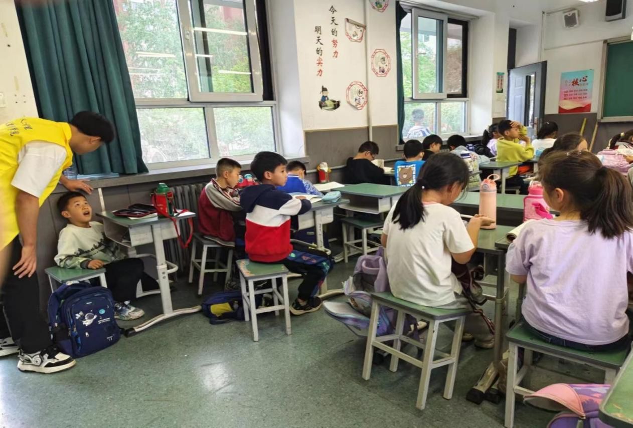 不啻微茫,造炬成阳。在这个燥热的季节里,一群充满活力的大学生志愿者,带着对教育的热情和对知识的尊重,走进宫尹小学,帮助小学生完成作业、监督写作业以及维持课堂秩序,为孩子们创造一个更加有序和高效的学习环境。