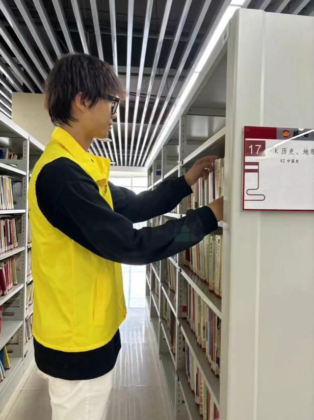 志愿者们在图书馆中整理图书,帮助借阅的人们查询图书,这不仅减轻了图书管理员的负担,也提升了沟通交流的能力。虽然图书馆的志愿活动有时很枯燥,但是志愿者们仍积极地去做,认真的去做,在劳动中不断提高效率。