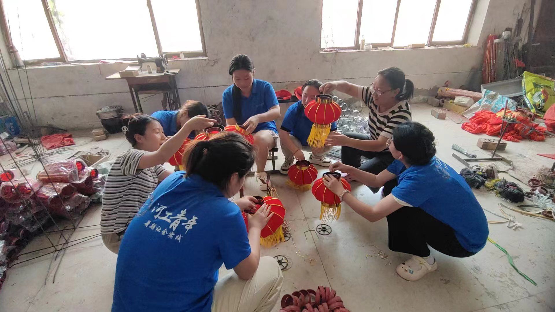7月22日,在指导老师刘蕾与指导老师潘亚静的带领下,团队来到当地农户家学习传统手工业宫灯的制作,通过学习,团队成员们了解到宫灯的制作工艺复杂且精细,通常包括备料、设计、制作骨架、裱糊、装饰、组装、检验与包装几个主要步骤。通过制作宫灯,团队更加深入地了解了传统文化的价值和意义。在传承传统文化的同时,也需要注重创新。通过引入现代设计理念和技术手段,可以赋予传统手工艺新的生命力和竞争力。