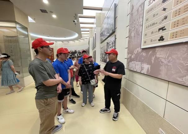 红歌是中国革命文化和社会主义先进文化的重要组成部分,蕴含着丰富的革命精神和历史内涵。在7月7日这个对于中国人民有深远意义的日子里,红韵智旅团来到了西柏坡纪念馆,并在广场上演唱《我和我的祖国》,队员们的脸庞洋溢着庄重与自豪,眼神中闪烁着团结一致、共同奋斗的光芒。歌声高昂激越,如同冲锋的号角,激励着人心,每一句歌词都仿佛承载着厚重的历史记忆,被队员们用真挚的情感缓缓倾泻而出。随后队员们进入西柏坡纪念馆深入了解西柏坡的历史背景、重要事件和革命人物。纪念馆内丰富的展品和生动的讲解,让学生们仿佛穿越时空,回到了那个波澜壮阔的革命年代。