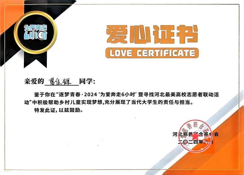 “逐梦青春2024‘为爱奔走6小时’河北最美高校志愿者