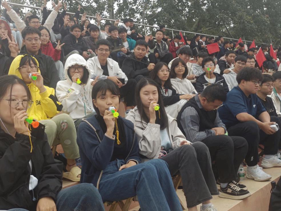 天空飘着细雨,宛如大自然为这场盛会调制的独特调料,虽带来些许湿润,却无法阻挡师生们如火的热情。细雨似在为这场狂欢奏响别样旋律,而心中的激情火焰越烧越旺。