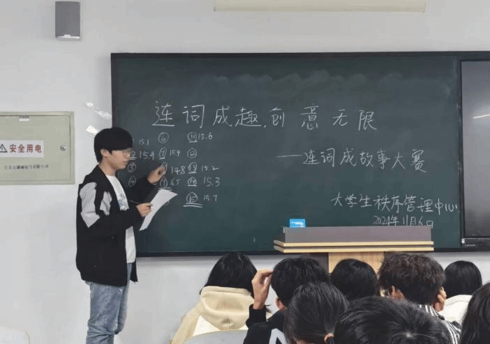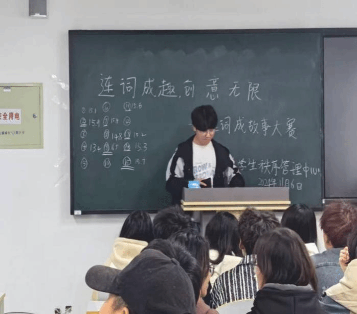 beat365亚洲版官网大学生秩序管理中心于2024年11月6日于主教1-1举办了“连词成趣,创意无限——连词成故事大赛”活动。