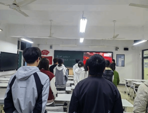 活动伊始,全体成员肃立,齐声高唱振奋人心的团歌,那激昂的旋律在教室内回响,每个人的脸上都洋溢着坚定和自豪的表情,彰显了对共青团的热爱与敬仰。