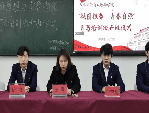 随着主持人的热情开场,开班仪式正式由王珊老师宣布开始。学生代表王鑫龙在仪式上发言,他表示,作为新时代的青年学子,将积极响应学院的号召,认真参与培训,深入学习马克思主义理论,不断提升自身的思想政治素质,并努力发挥模范带头作用,引领身边同学共同进步。