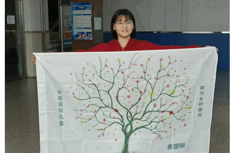 明信片制作完成后,工作人员组织学生们在希望书画布上按手印并自行上传作品照片,为感谢学生们为留守儿童送去祝福,工作人员将评出优秀作品并为前九名送上礼物。关爱留守儿童希望树上留下了一个个五彩斑斓的手印,诉说着对未来的美好期许。这些祝福不仅蕴含着学生们对贫困山区孩子们的深深祝福,更展现了他们积极向上的精神风貌和对公益事业的热爱。