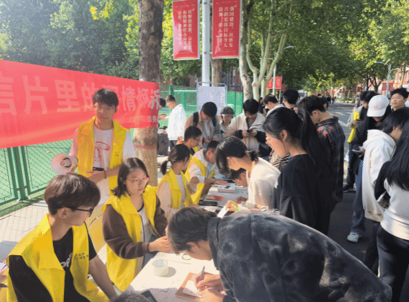 随着活动的正式开始,师生们纷纷来到摊位前,领取属于自己的明信片。这一刻,时间仿佛静止,喧嚣的世界被隔绝在外。他们拿起笔,就像打开了与祖国对话的大门,让思绪在笔尖流淌。