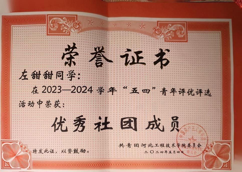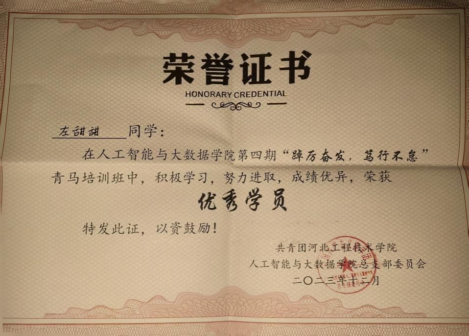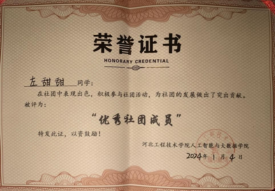在学生工作方面,曾获得“优秀社团成员”“优秀学员”“优秀团员”等称号。