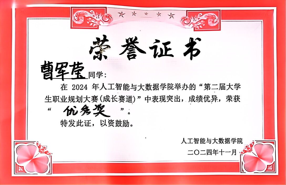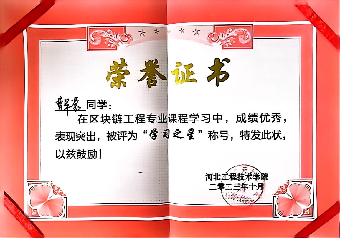 “废物利用,变废为宝DIY”劳动实践教育活动一等奖、专业课成绩突出“学习之星”。