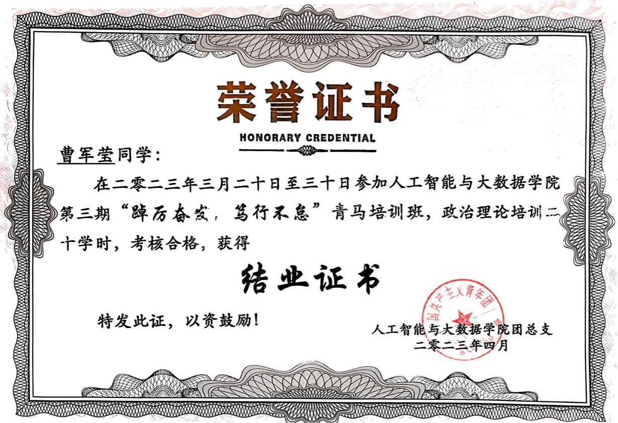“新时代,闪亮的中国青年”主题微课三等奖。