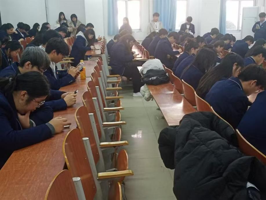 竞赛开场之前,尹钧院长目光炯炯地看着台下的学生们说道:“同学们,‘学习强国’不只是个 APP,更是一座知识富矿。这次竞赛是检验大家知识积累的契机,希望你们把赛场当战场,赛出风采、赛出水平,在知识交锋中夯实根基,让学习成为习惯,为自己学业添砖加瓦。”随着尹院长话语声落,比赛正式拉开帷幕。