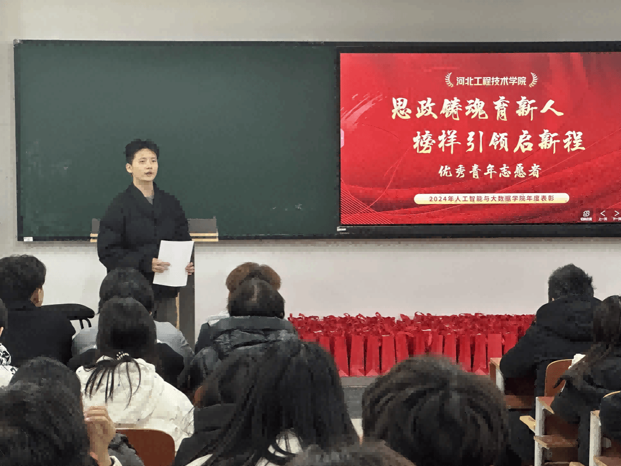 在热烈的掌声中,获奖志愿者们依次走上领奖台。由王珊老师为他们颁发了精心准备的礼品,不仅是对他们辛勤付出的表彰,更是一份荣誉的象征,激励他们在以后继续。志愿者们手捧礼品,脸上洋溢着自豪和喜悦的笑容。